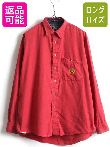 【12/13 ポイント 2倍!】 90s USA製 ■ BURBERRYS PRORSUM バーバリー プローサム ワンポイント コットン 長袖 シャツ ( 男性 メンズ M ) 古着 90年代 長袖シャツ 赤| US古着 中古 オールド アメリカ製 BURBERRY ポケット付き ロゴ刺繍 長袖シャツ チェック ノバチェック ク