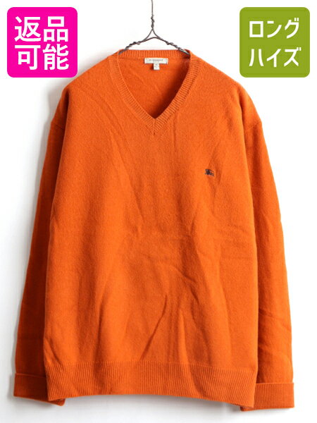 【12/13 ポイント 2倍!】 イタリア製 大きいサイズ XL ■ BURBERRY LONDON バーバリー ロンドン Vネック ラム ウール 長袖 ニット セーター ( メンズ )古着 オレンジ| 古着 中古 男性 ワンポイント ニットセーター 長袖ニット 長袖セーター ロゴ刺繍 プルオーバー ラムズウ