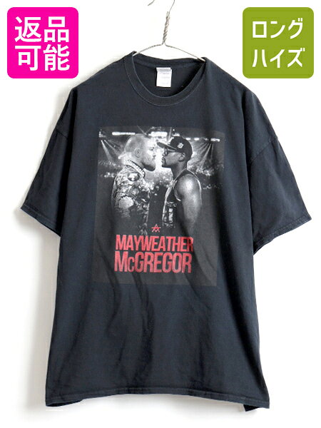 【12/13 ポイント 2倍!】 大きいサイズ XXL 人気 黒 ■ コナー マクレガー x メイウェザー ボクシング プリント 半袖 Tシャツ ( メンズ ) 古着 McGregor Mayweather | 中古 男性 プリントTシャツ 半袖Tシャツ フォトプリント クルーネック カットソー 2017 MMA Boxing UFC