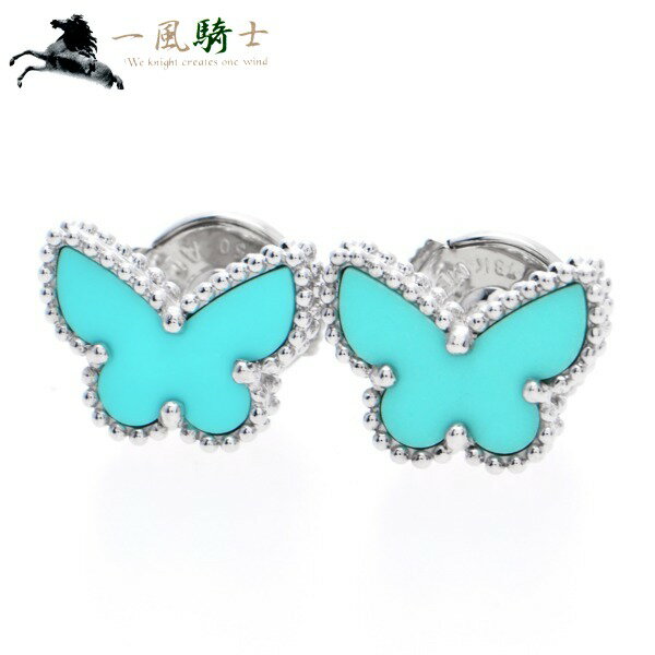 411279【中古】【VanCleefArpels】【ヴァンクリーフ&アーペル】スウィート アルハンブラ ピアス パピヨン K18WG×ターコイズVCA 750 スイート 蝶 イヤリング ブランドジュエリー