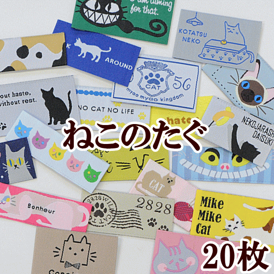 ねこのたぐ 20枚セット ゆうパケット送料無料 《 刺繍タグ 刺しゅう 猫 ネコ cat キャット タグ タグテープ ワッペン ハンドメイド 手芸 手作り ラベル 》